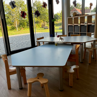 Unsere Kita „Lütte Lüüd“ ist im August 2021 in den Neubau in der Düsterlohe umgezogen. Hier betreuen wir 86 Kinder im Alter von 8 Wochen bis zur Einschulung.