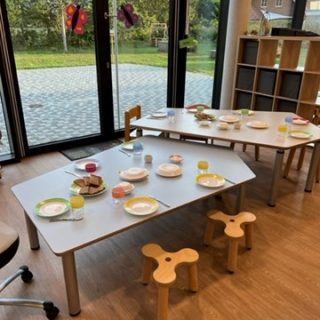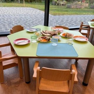 Dabei sind uns freundliche Tischsituationen, in denen die Kinder selbst bestimmen, was sie essen möchten, wichtig. Ihrem Entwicklungsstand entsprechend essen die Kinder selbstständig oder erhalten dabei von uns die benötigte Unterstützung.